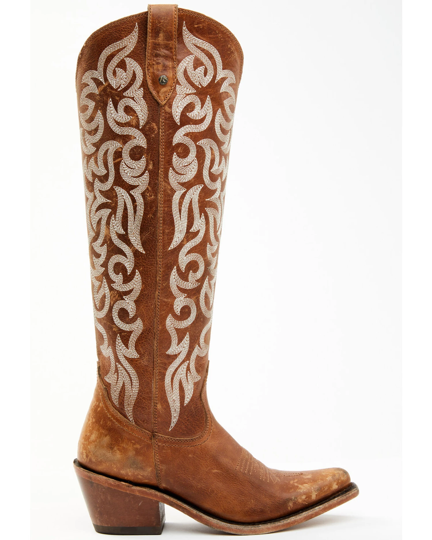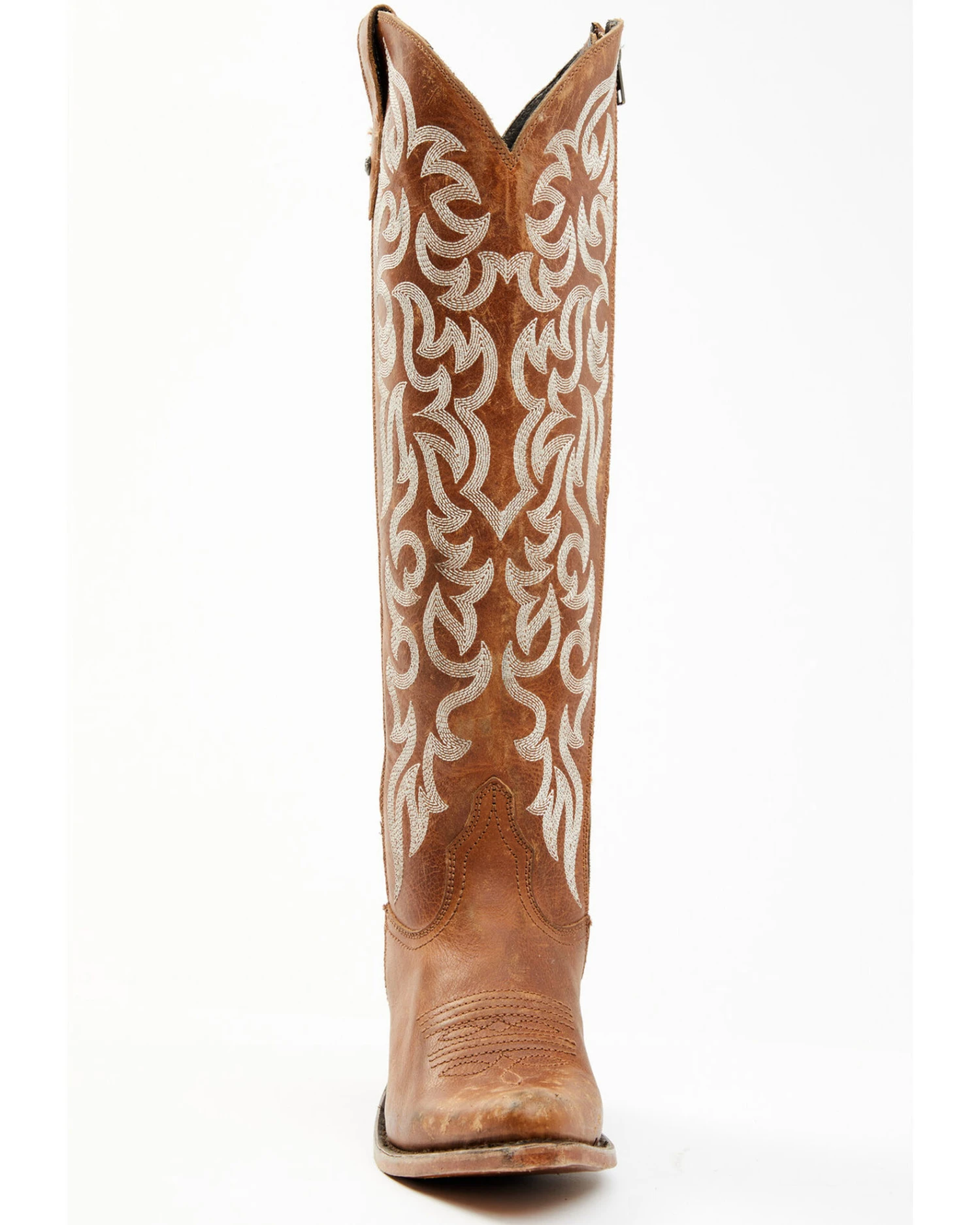 - Brown with white western stitching on shaft