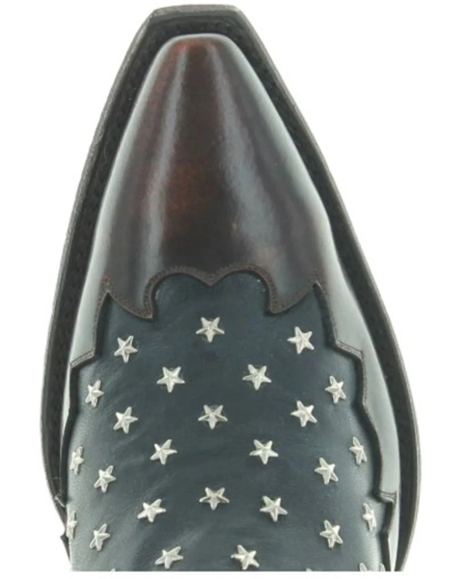 - Dark brown leather vamp and blue accent inlay with stars design